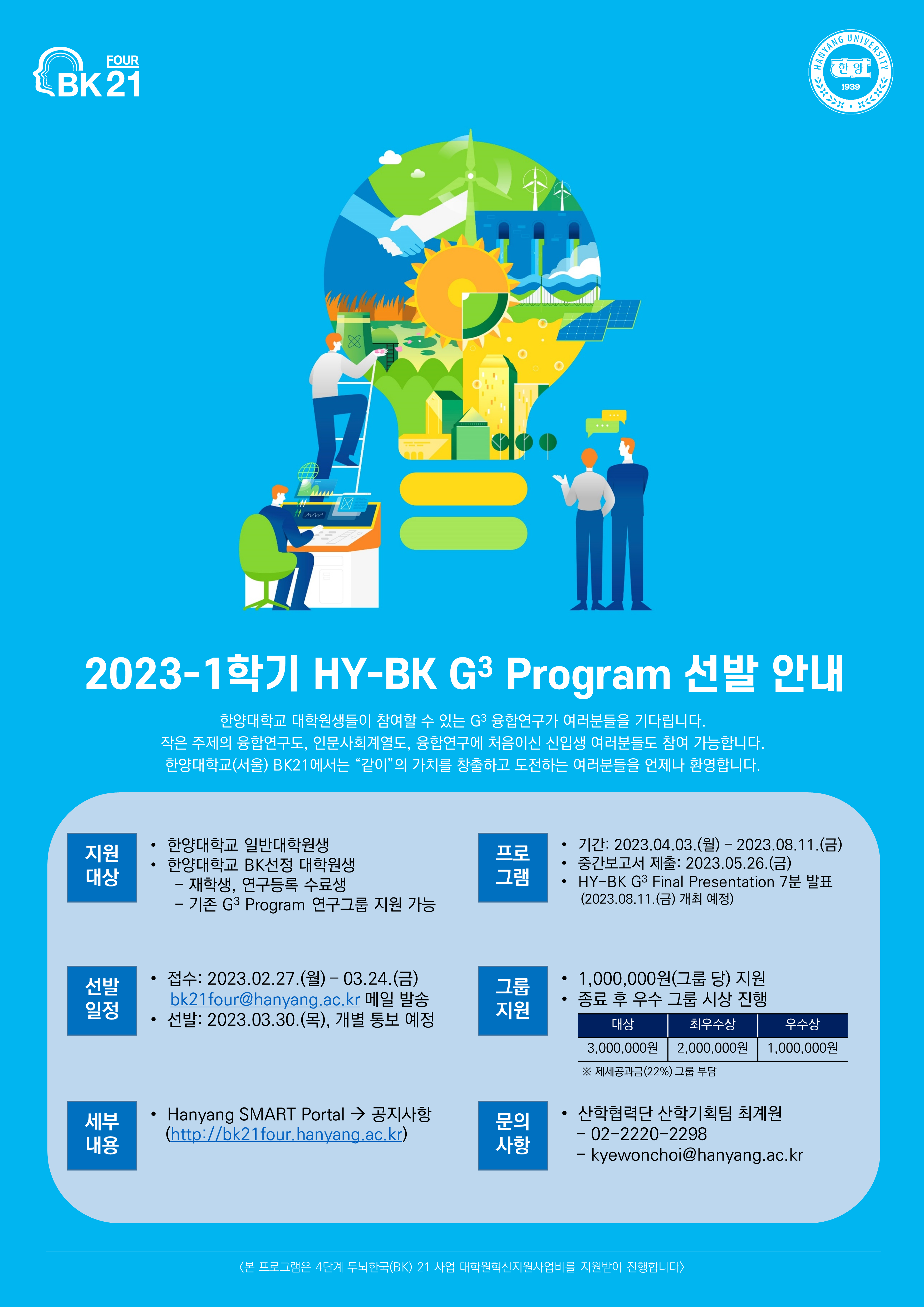 [컴퓨터소프트웨어학과] 2023-1 대학원생 융합연구 프로그램(HY-BK G3 Program) 안내