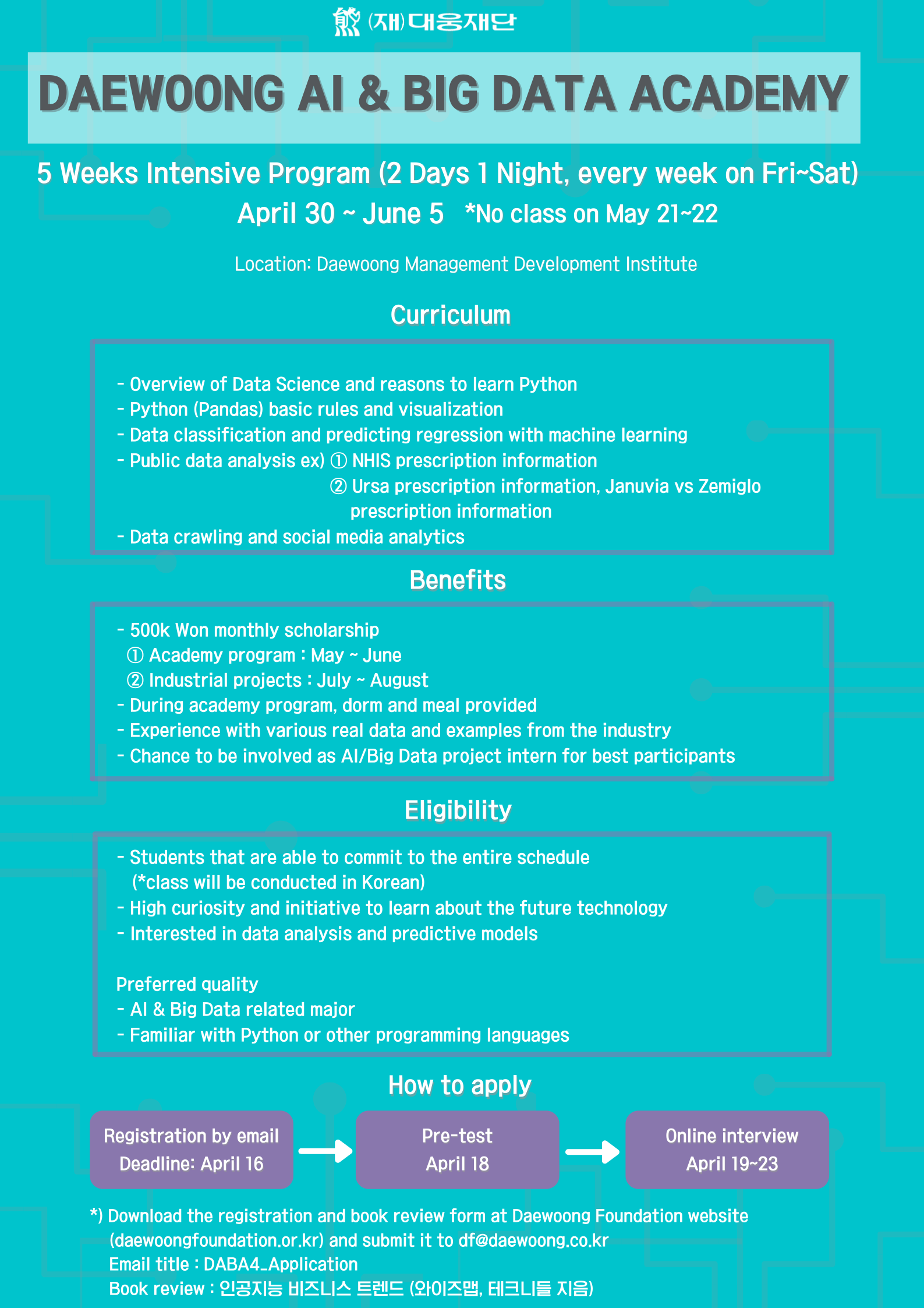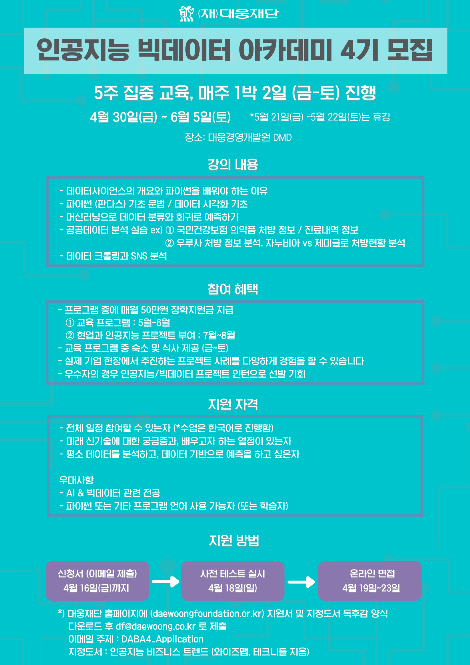 [장학생 선발] [대웅재단] 인공지능 빅데이터 아카데미 4기 장학생 모집
