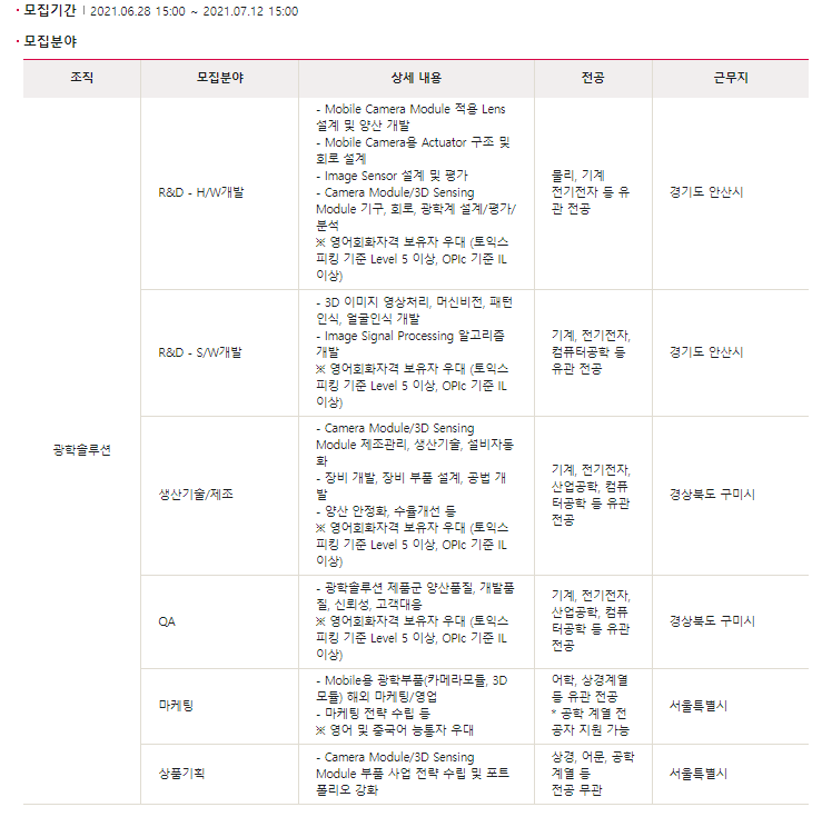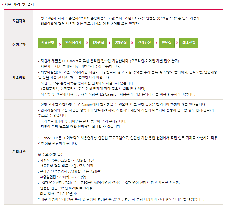 (LG이노텍) 모집분야(LG이노텍) 지원 자격 및 절차