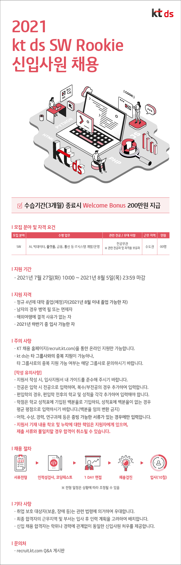 ・채용 홈페이지(recruit.kt.com)을 통한 온라인 지원만 가능합니다.