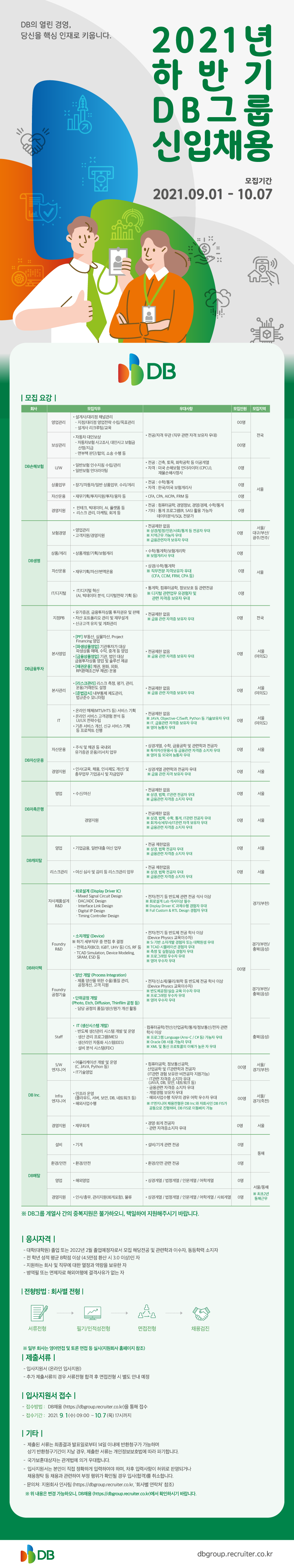 [DB그룹] 2021년 하반기 DB그룹 신입채용(~10.07())
