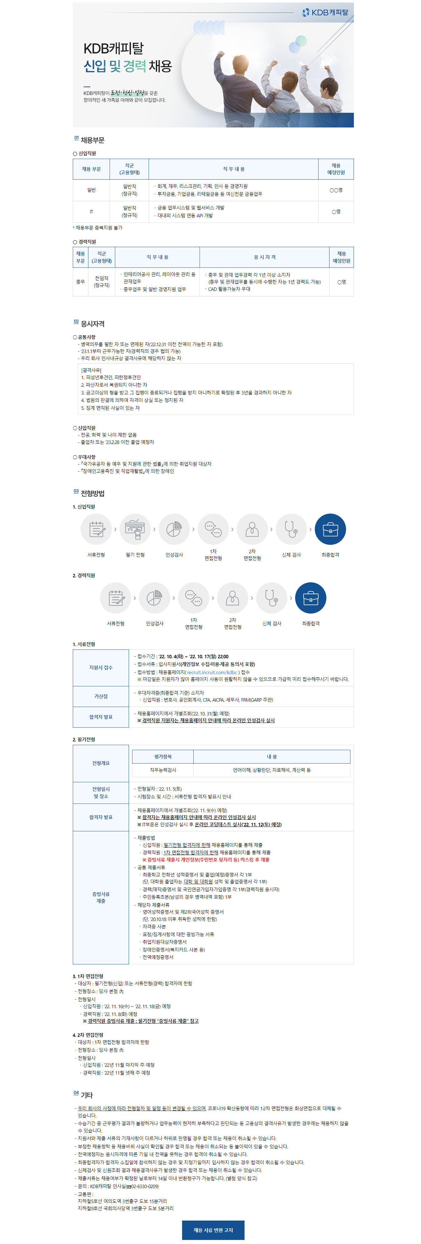 [채용] [인크루트] KDB캐피탈 신입사원 공개 채용 공고
