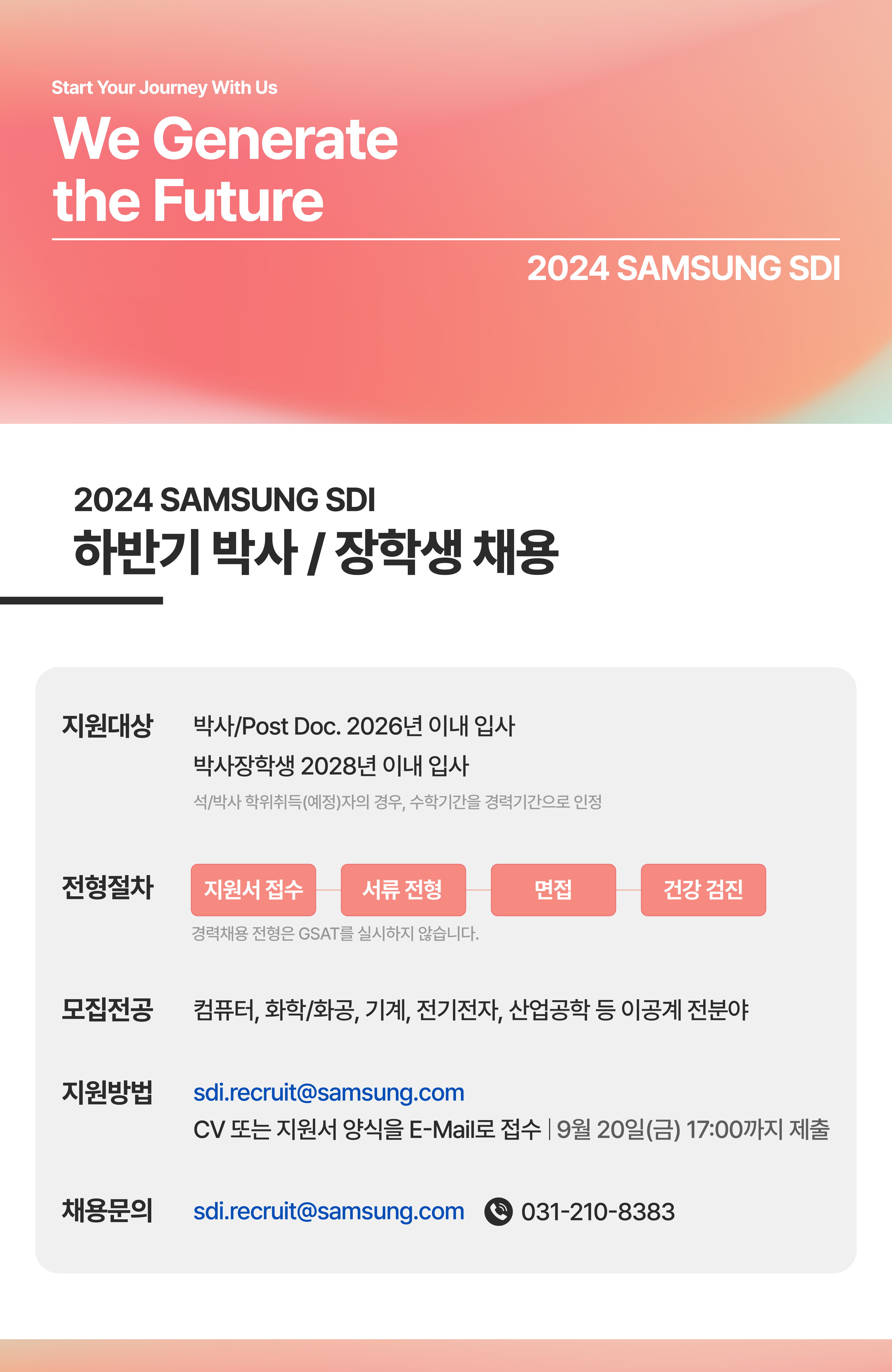 [채용] 삼성SDI 2024 하반기 박사/박사장학생 채용공고