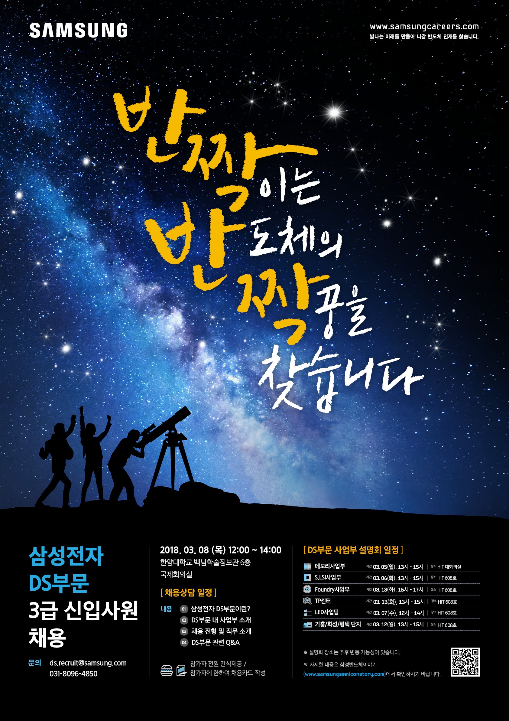 삼성전자 DS부문 채용설명회 및 전공별 채용상담 일정