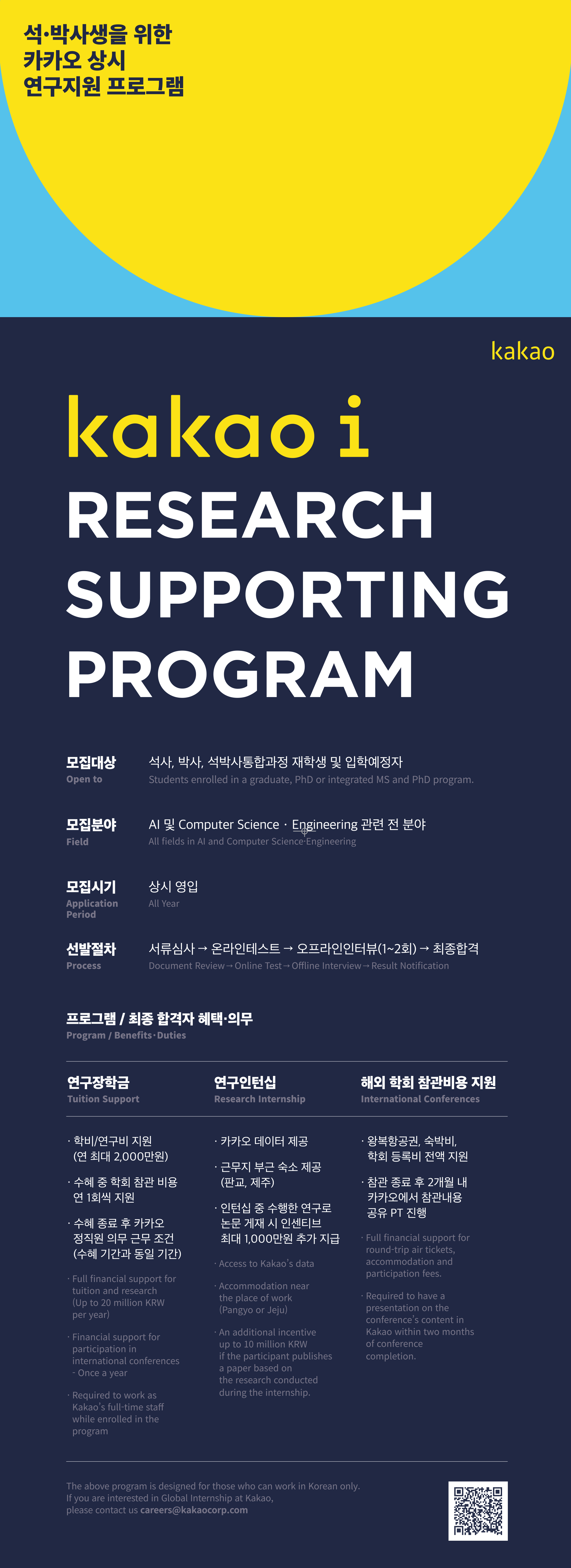 석/박사 대상 카카오 연구지원 프로그램 (kakao i RESEARCH SUPPORTING PROGRAM) [상시모집]