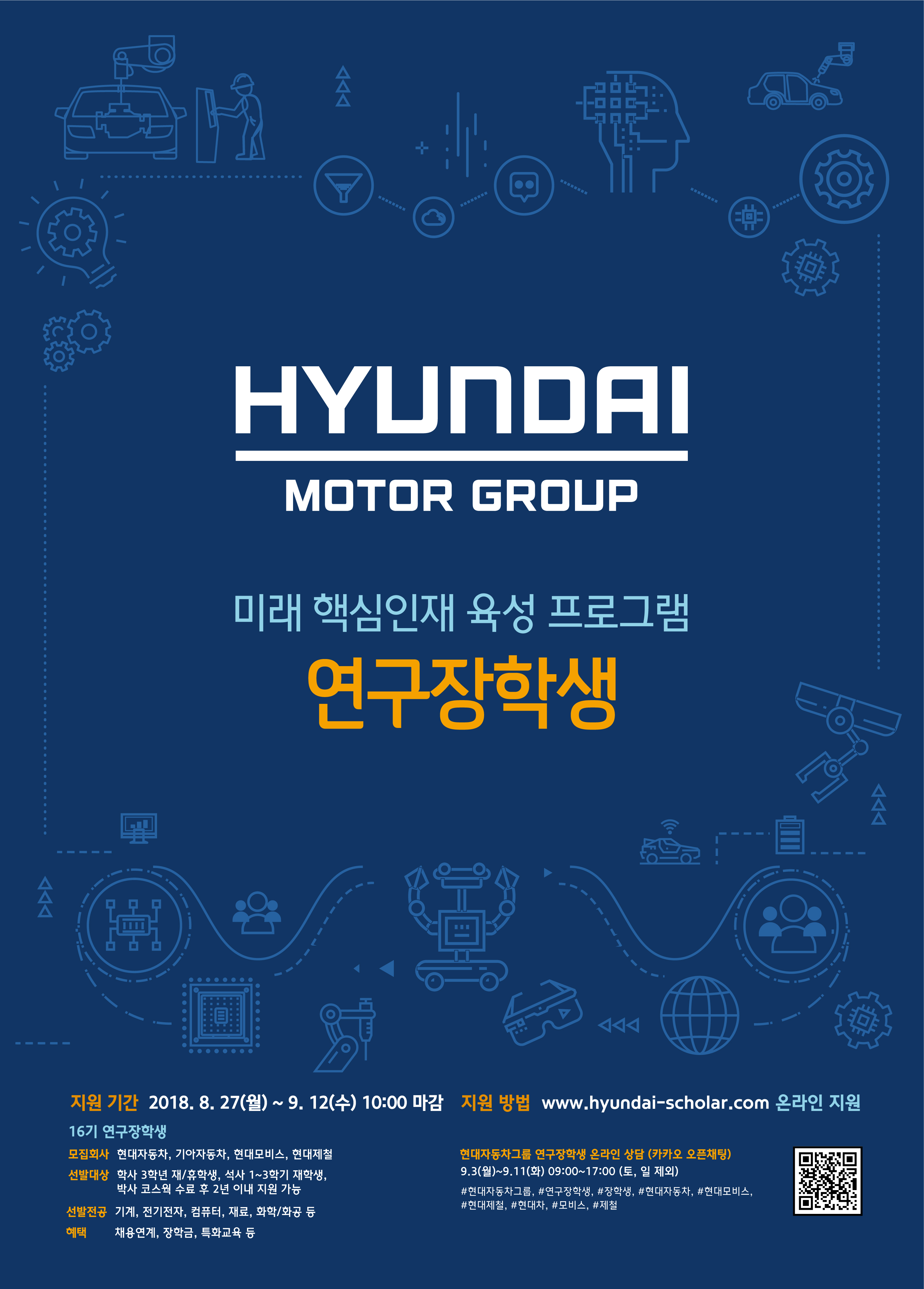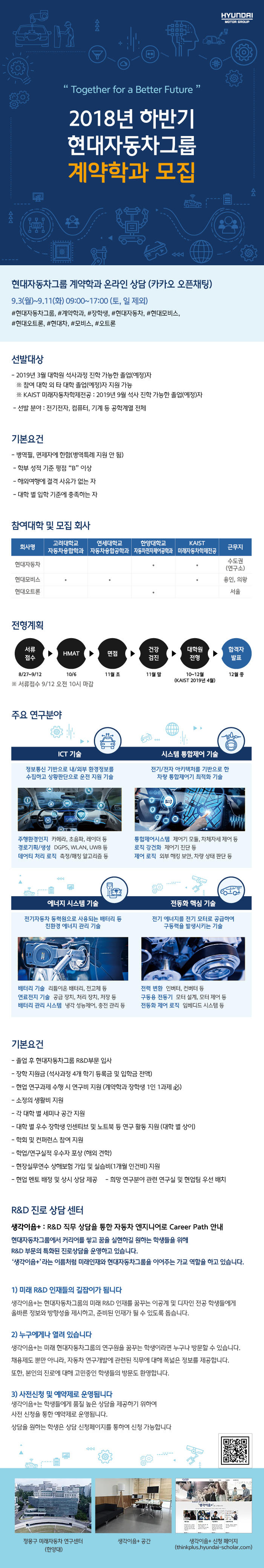 - 내용 : 2018 하반기 현대자동차그룹 연구장학생&계약학과 모집 설명회