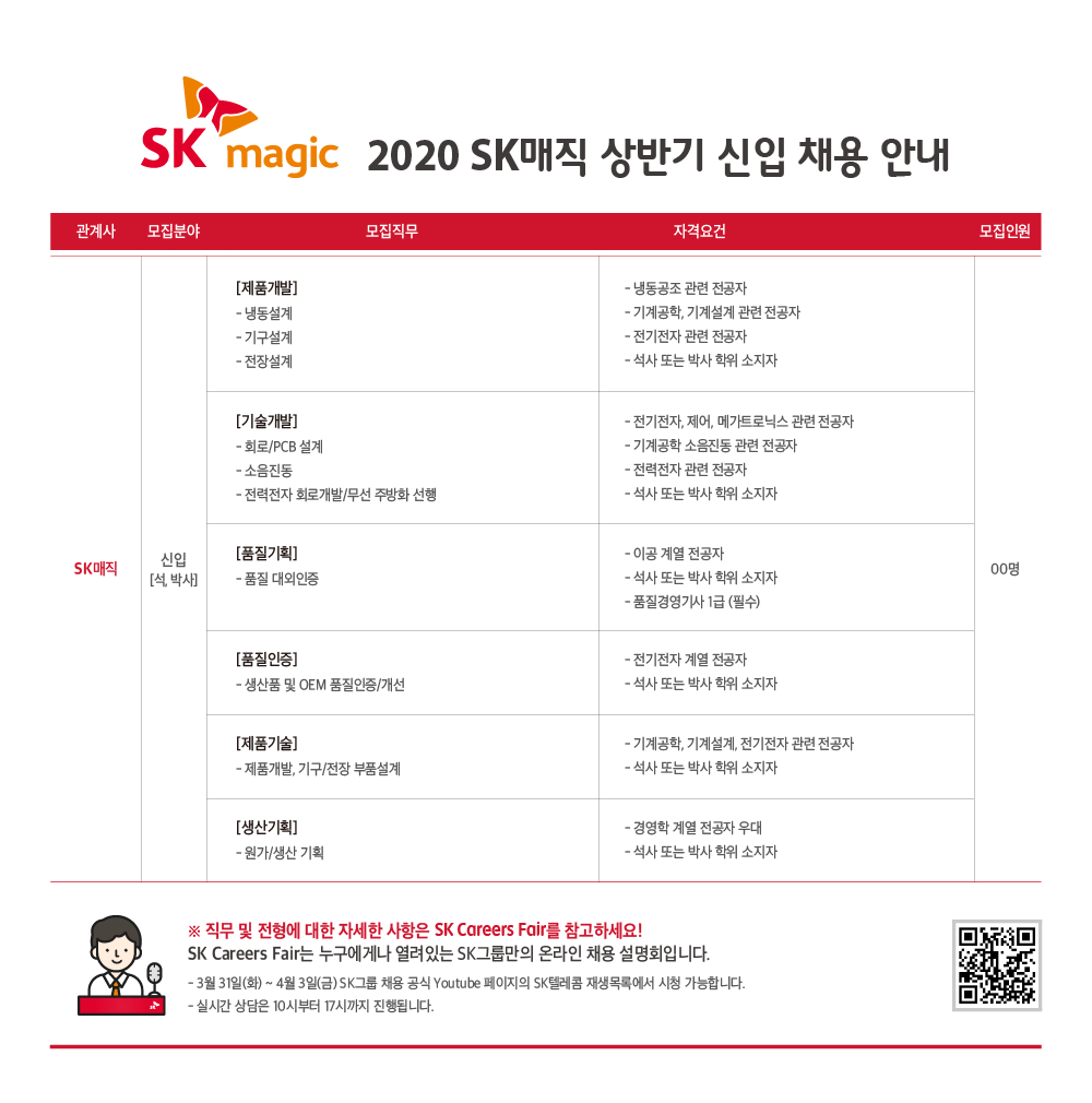 서류전형 > 필기전형(SKCT) > 면접전형(6월1주~2주 중) > 최종입사(20년7, 8월 중)