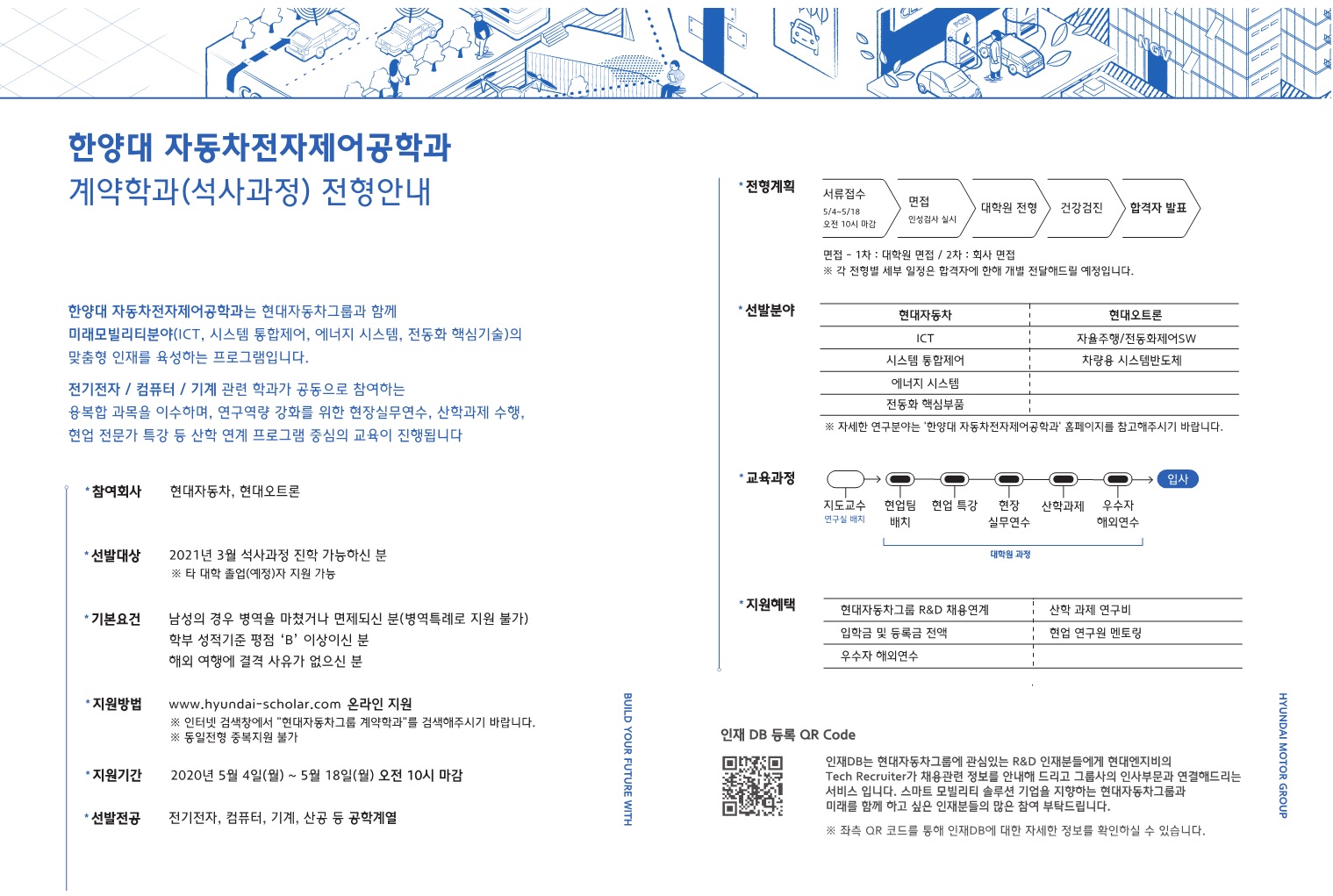 [모집] 2020 상반기 현대차그룹 연구장학생/계약학과 선발