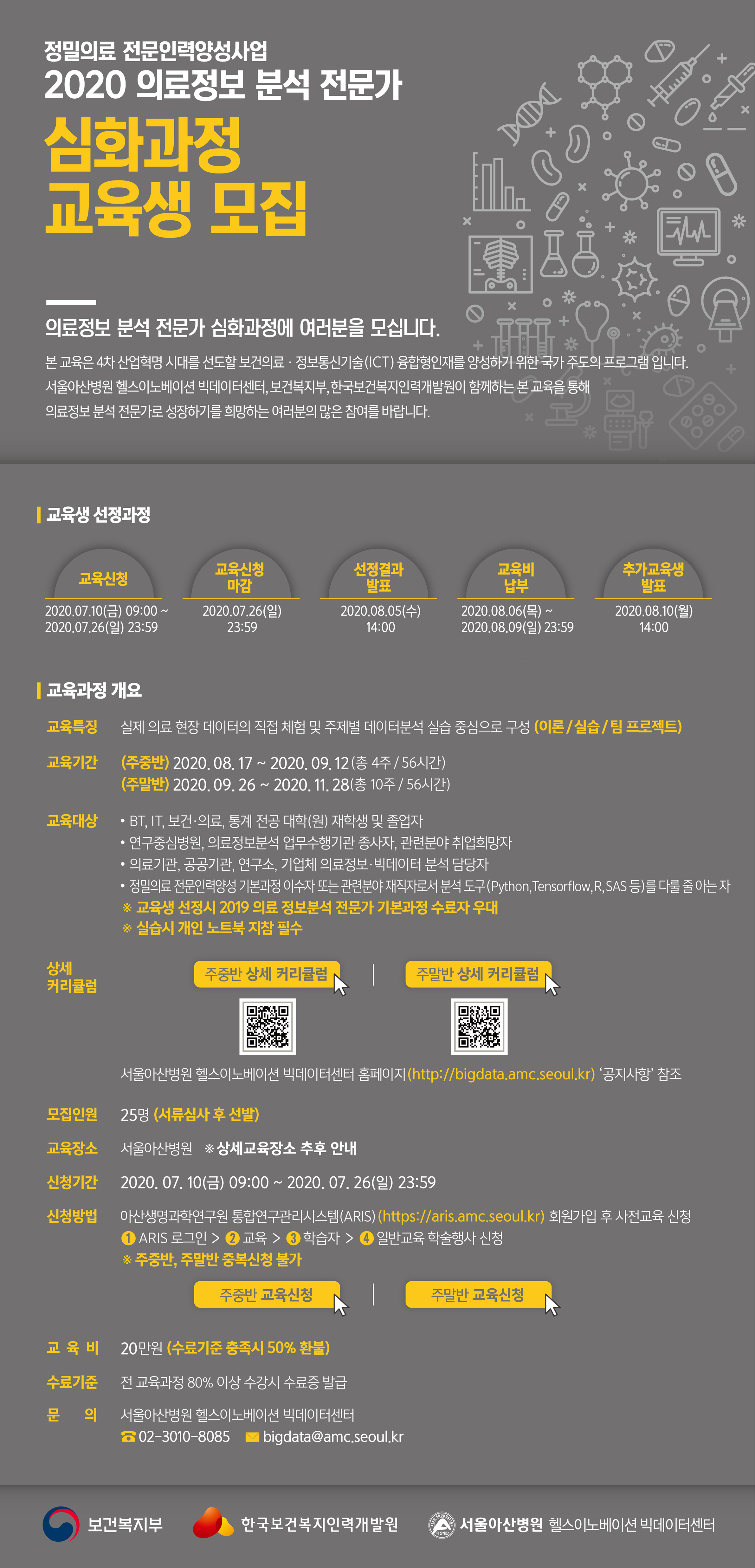 [모집] 서울아산병원 빅데이터센터 2020 의료정보 분석 전문가 심화과정 모집