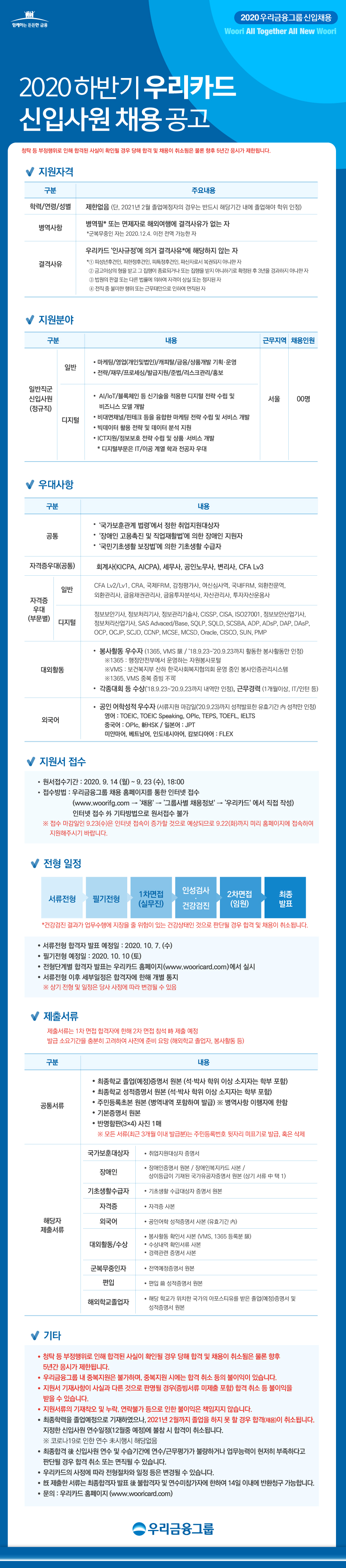 [채용] 2020 하반기 우리카드 신입사원 공채