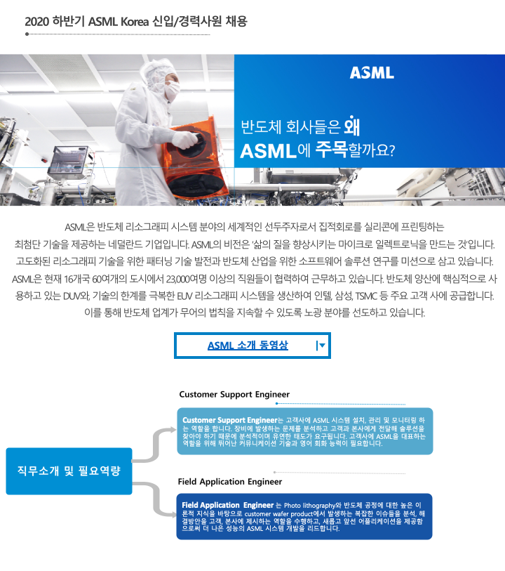 ■ 2020 하반기 ASML Korea 신입/경력 채용 지원하기 (온라인접수)