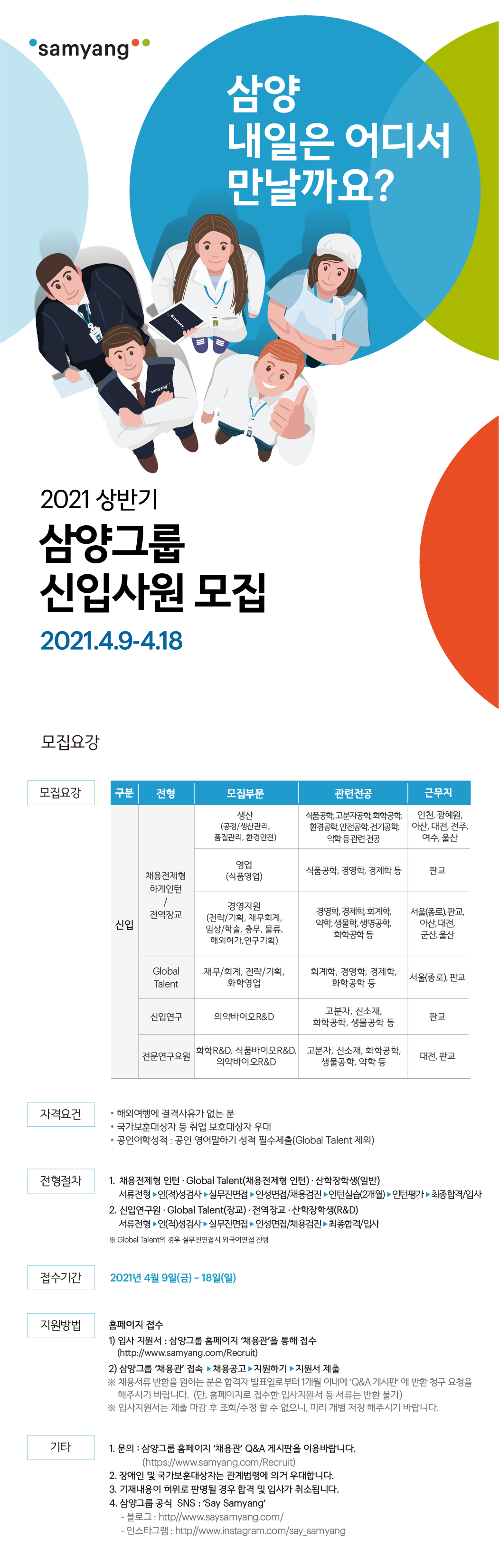 - 직무 및 그룹관련 내용을 확인하시려면 삼양그룹 공식 SNS을 확인해주세요