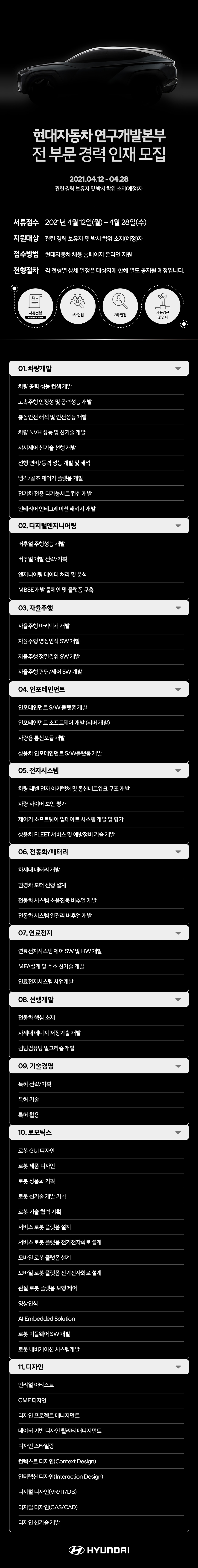 [현대자동차현대자동차 연구개발본부 전 부문 경력 인재 모집(~04.28)