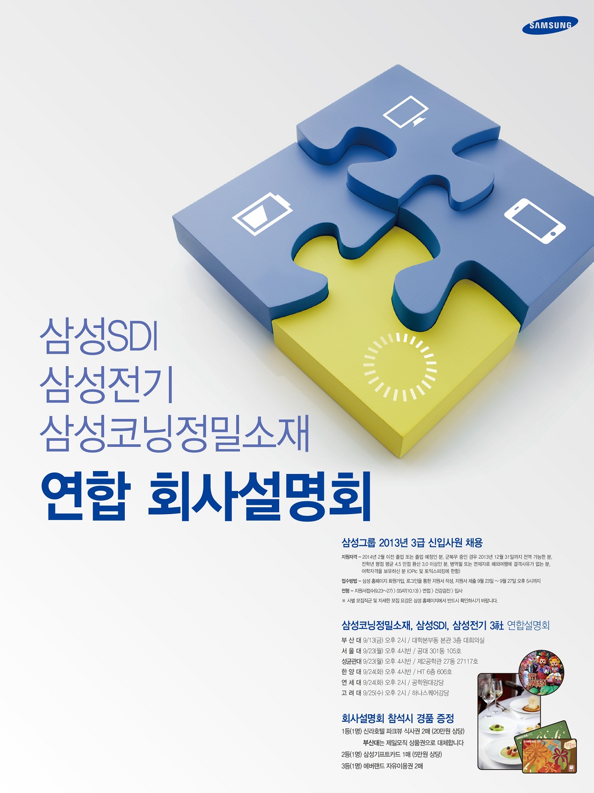 삼성전기, 삼성SDI, 삼성코닝 정밀소재 합동 채용 설명회 포스터 첨부합니다.
