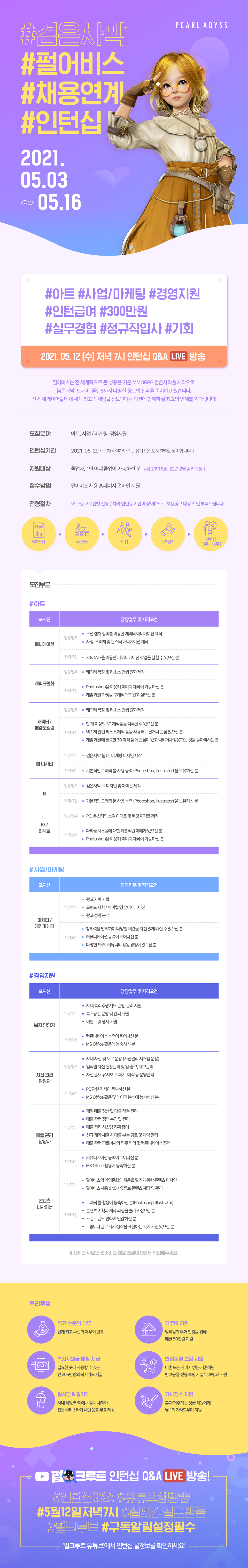 콘텐츠 디자이너 | 담당업무 | -펄어비스의 기업문화와 채용을 알리기 위한 콘텐츠 디자인 -펄어비스 채용 SNS / 유튜브 콘텐츠 제작 및 관리 |