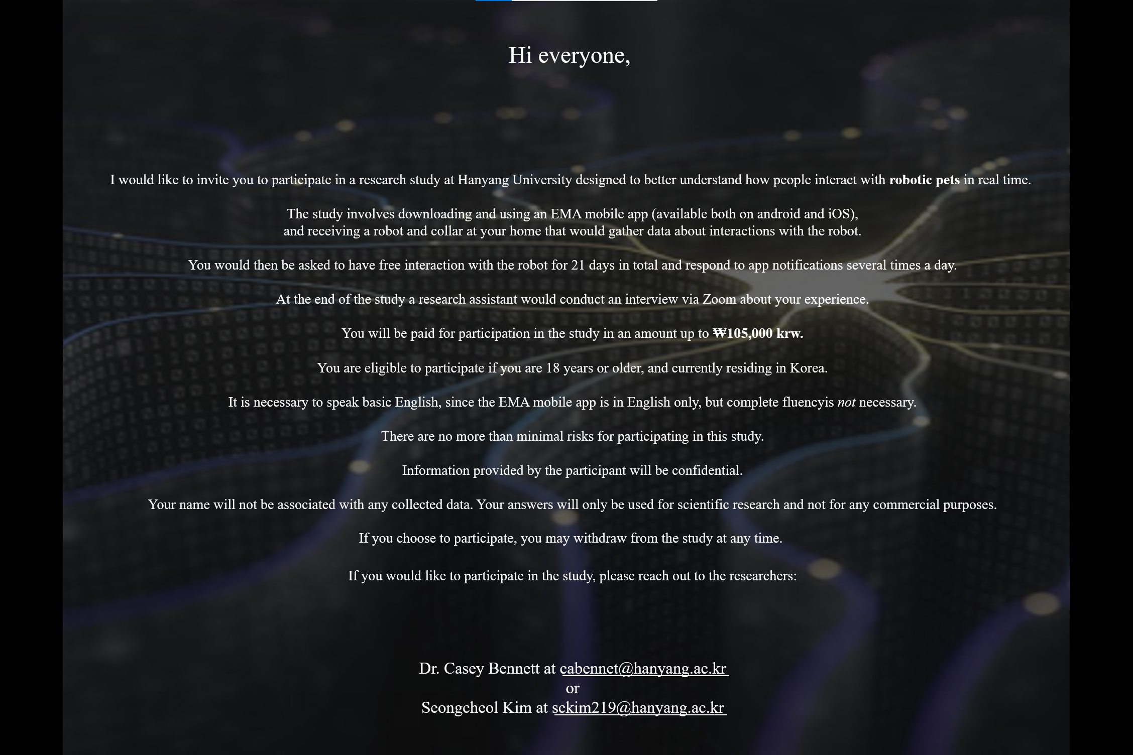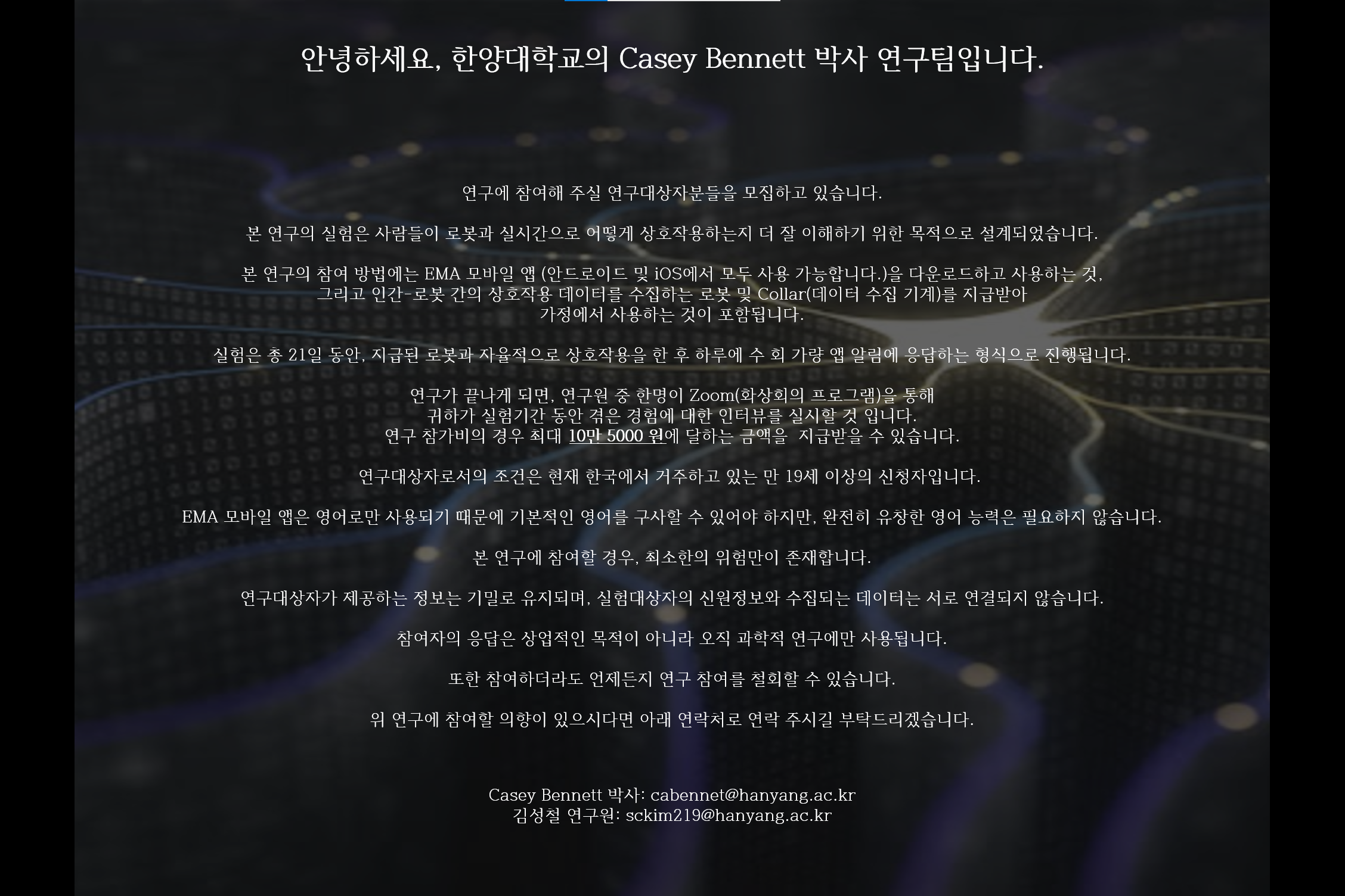인간-로봇 상호작용 이해를 위한 로보틱 연구 참가자 모집 (모집공지 포스터 참고)
