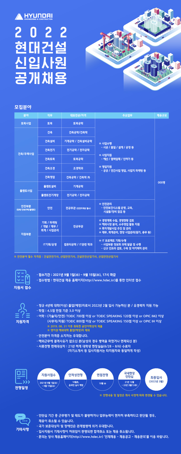 [채용] [현대건설]2022 현대건설 신입사원 공개채용(~9.15(수) 17시)