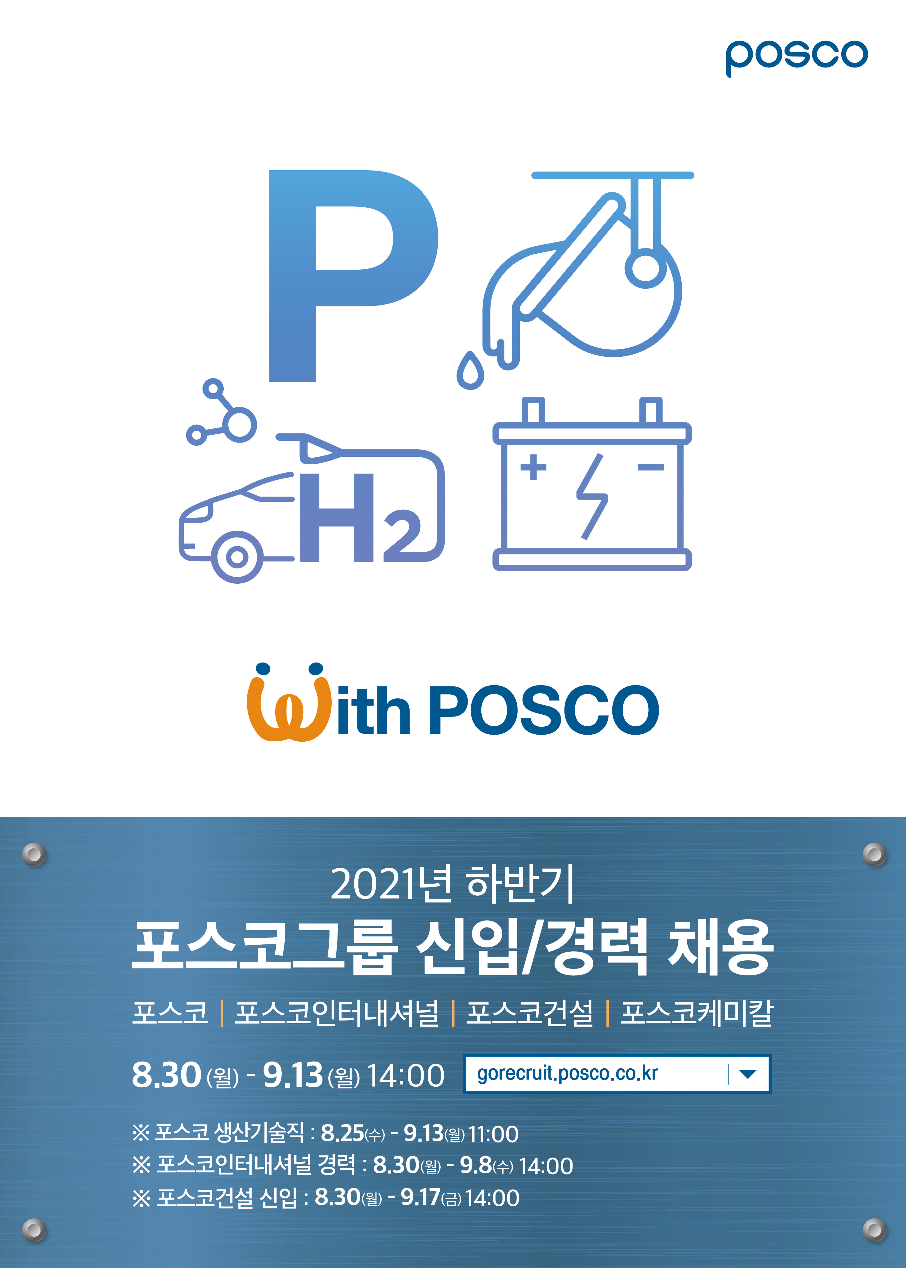 [채용] [포스코그룹] '21 하반기 포스코/인터내셔널/건설/케미칼 신입 채용 (~9/13)