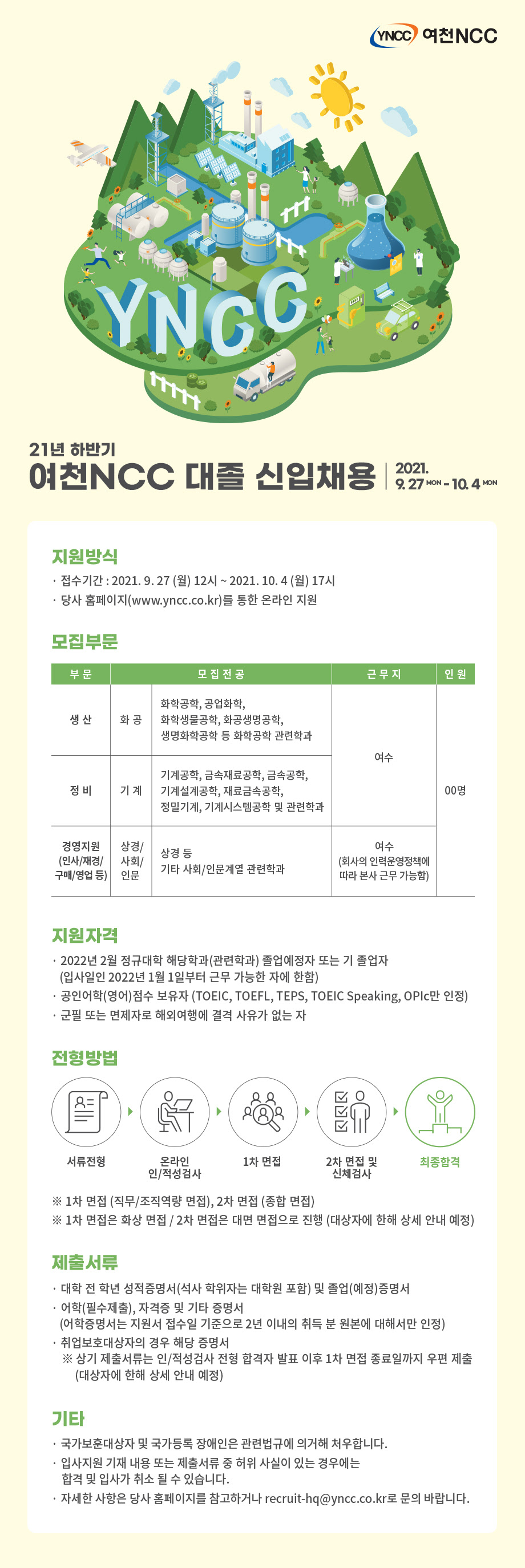 [채용] 21년 하반기 여천NCC 대졸 신입 채용 (~10.4(월))