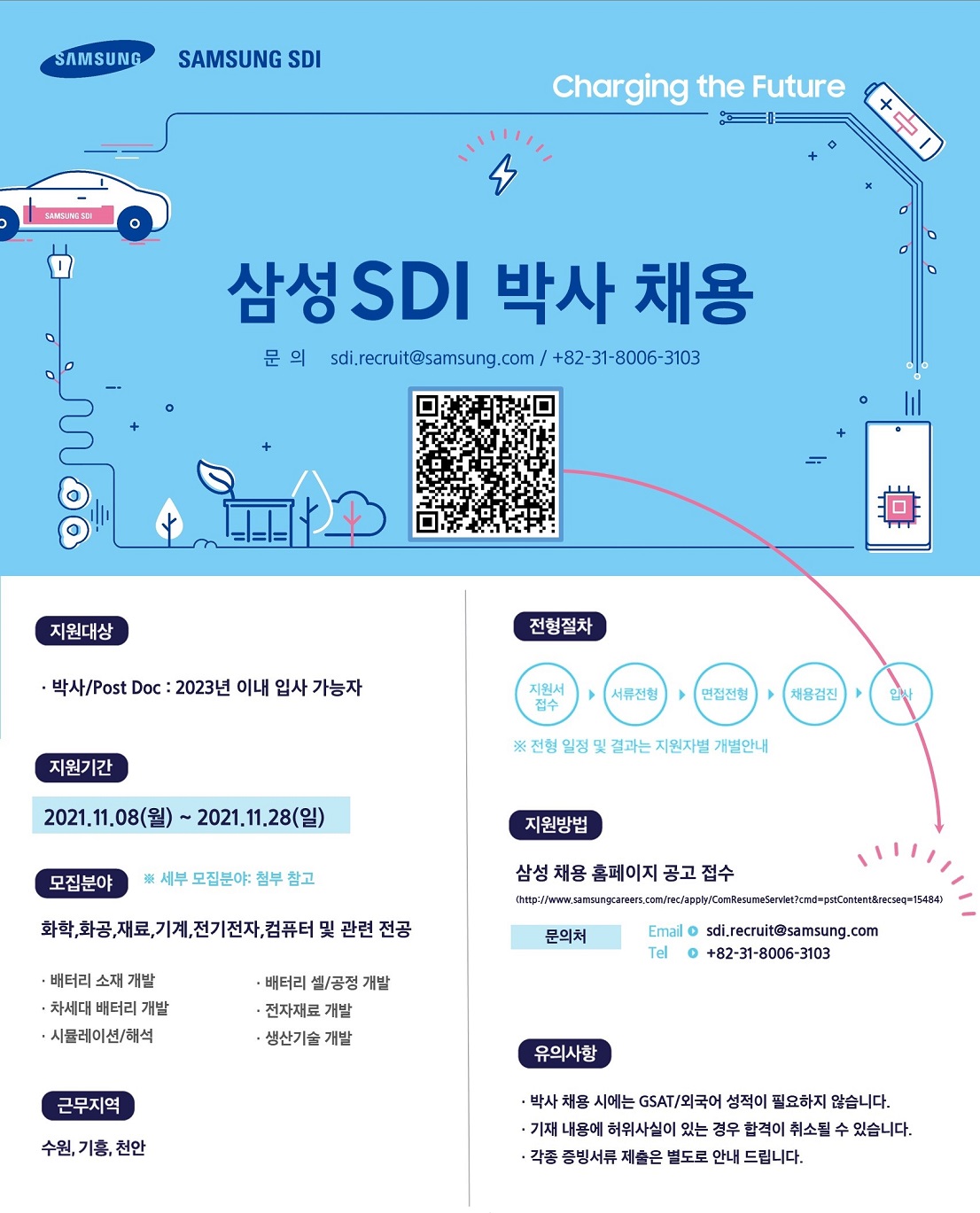 [채용] [삼성SDI] 학과 홈페이지 내 채용공고 (박사급)