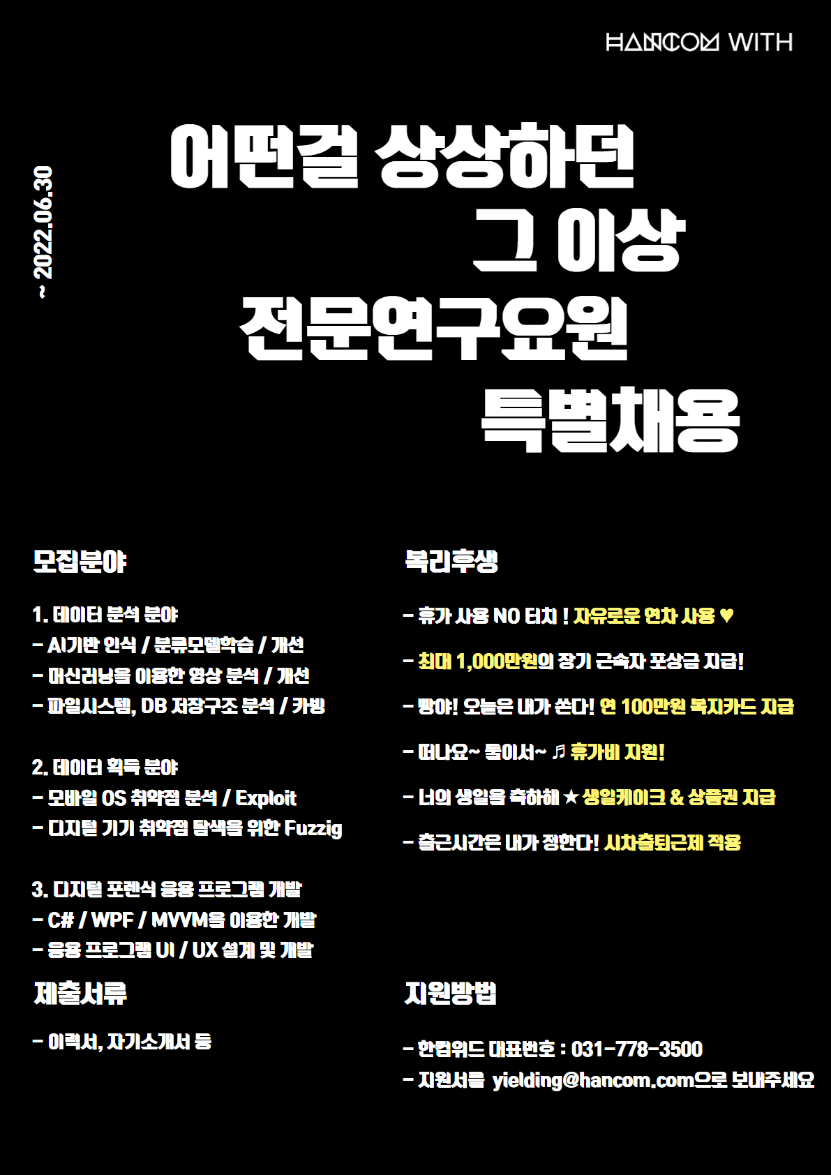 (주)한컴위드는 디지털 포렌식 분야의 세계 선도 기업 및 국내 시장 1위의 타이틀을 가지고 있고 현재 판교 테크노밸리에 위치해 있으며 약 100여 명의 임직원이 다양한 제품을 개발하고 있습니다.