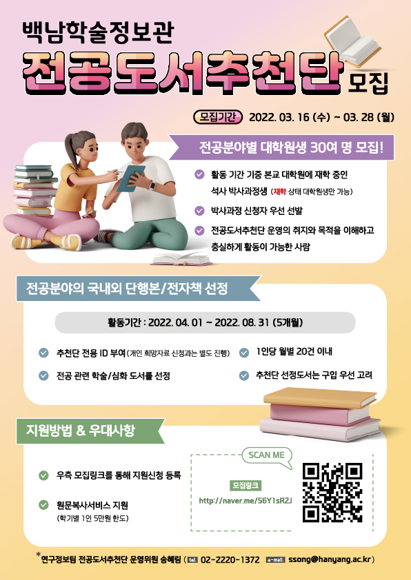 1. 모집대상: 본교에 재학 중인 대학원생 중 전공별로 30명 내외 선발(휴학생 불가)