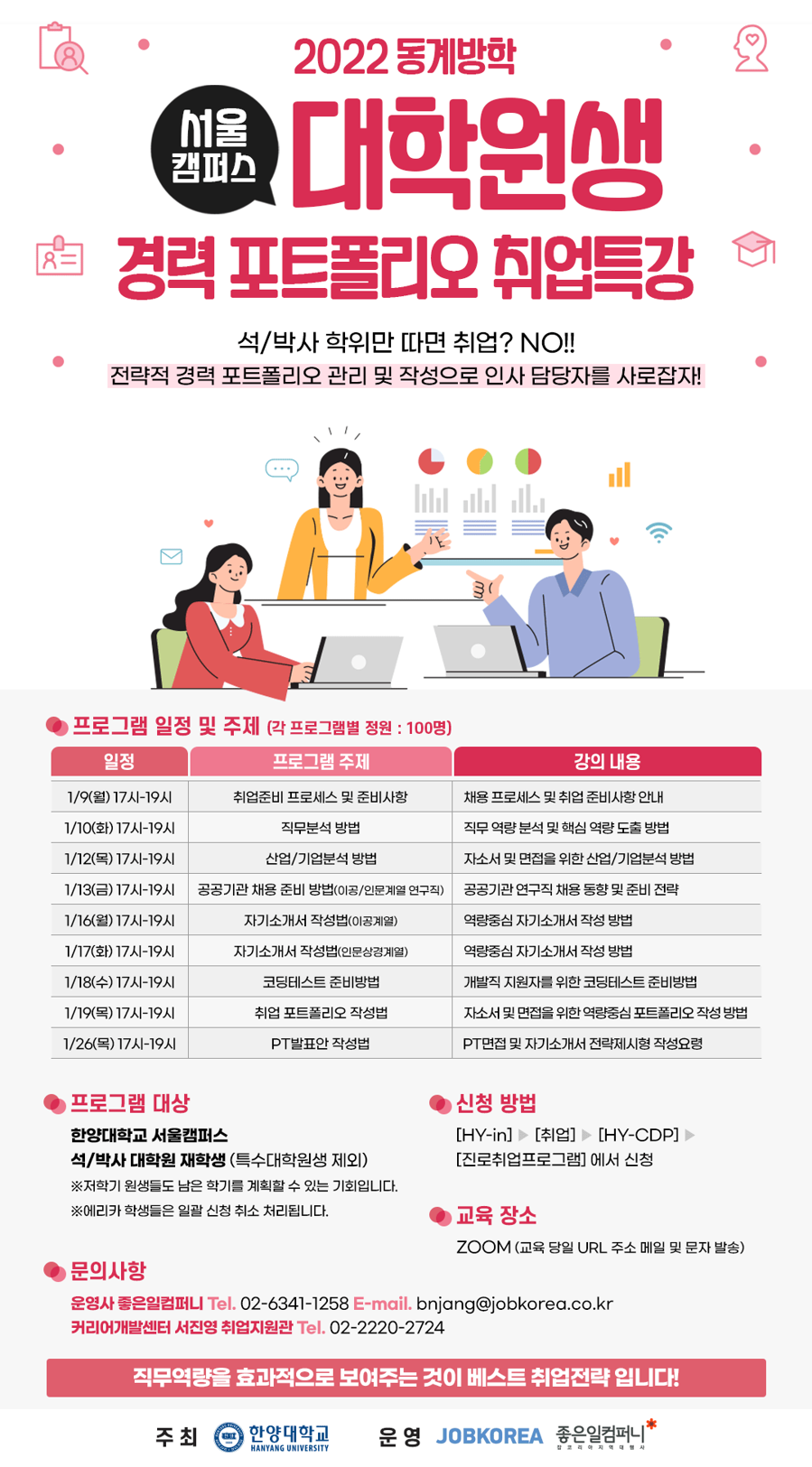 2022 동계방학 대학원생 경력 포트폴리오 취업특강 홍보포스터