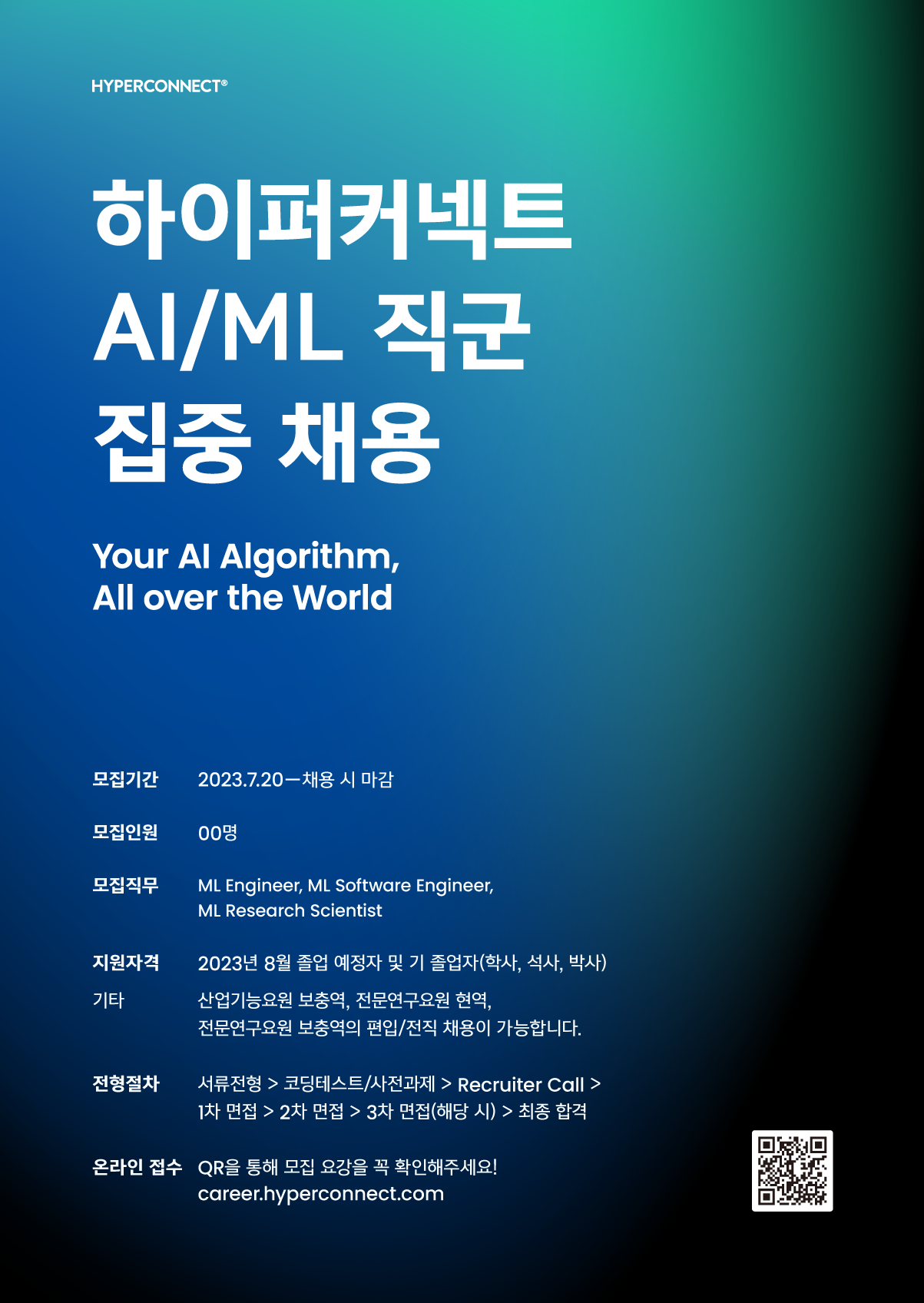 - 모집직무: ML Engineer / ML Software Engineer / ML Research Scientist (채용 시 마감)