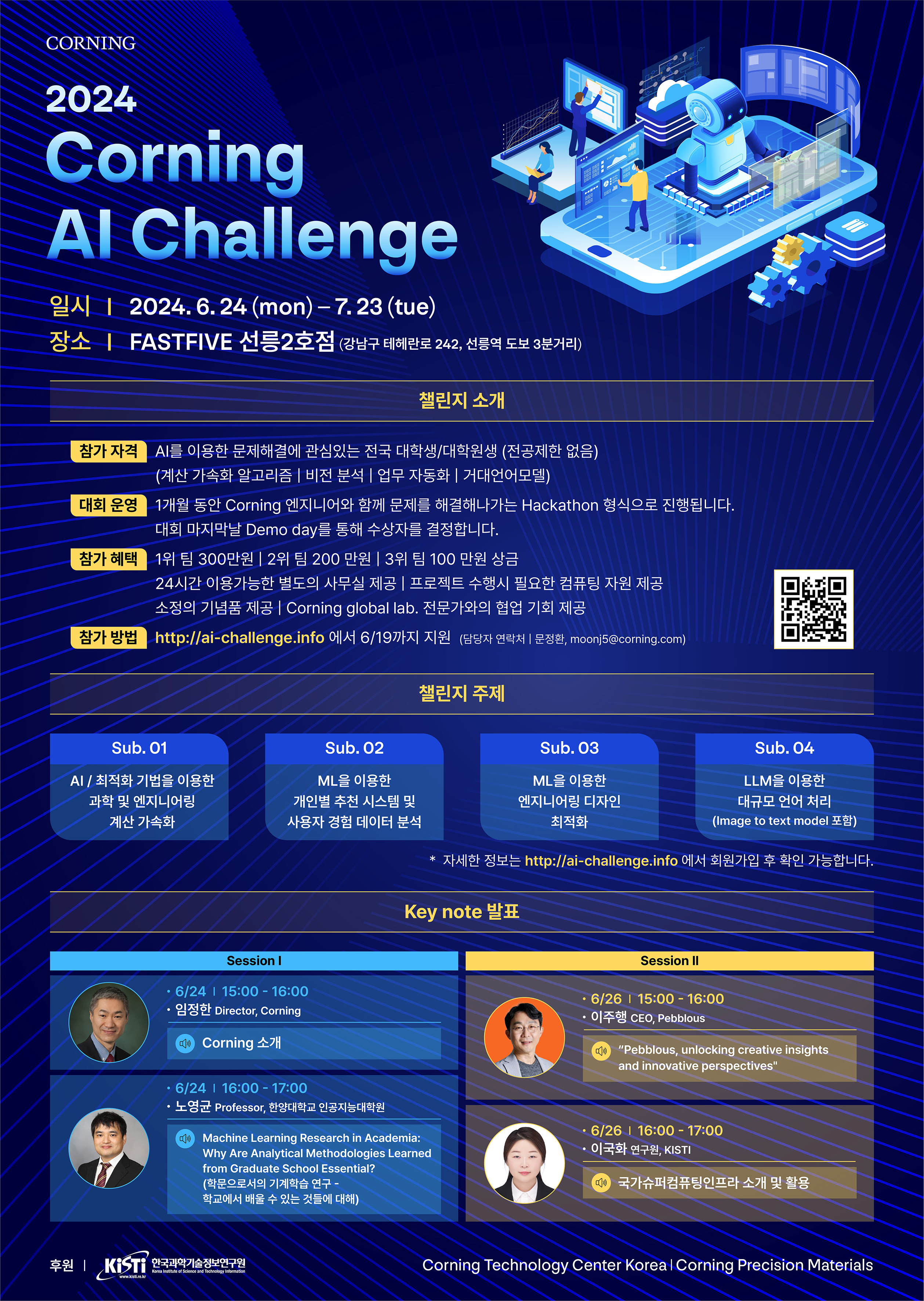 - 대회운영 : 1개월 동안 Corning 엔지니어와 함께 문제를 해결해나가는 Hackathon