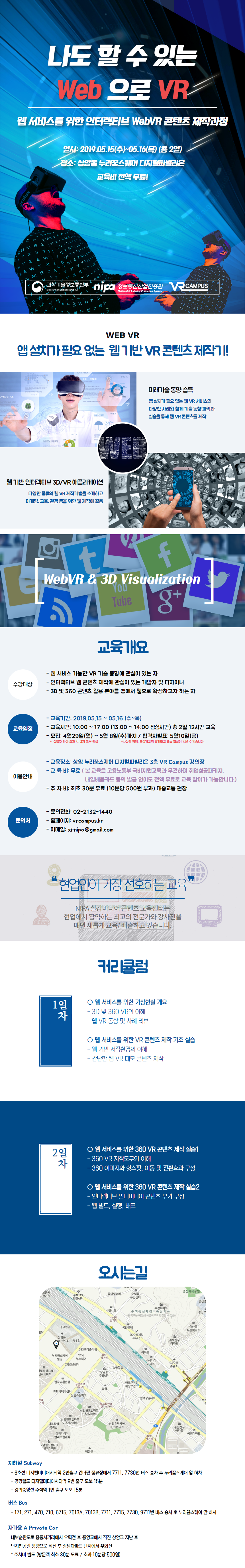 - 교육장소 : 상암동 누리꿈스퀘어 디지털파빌리온 3층 VRCampus 교육장
