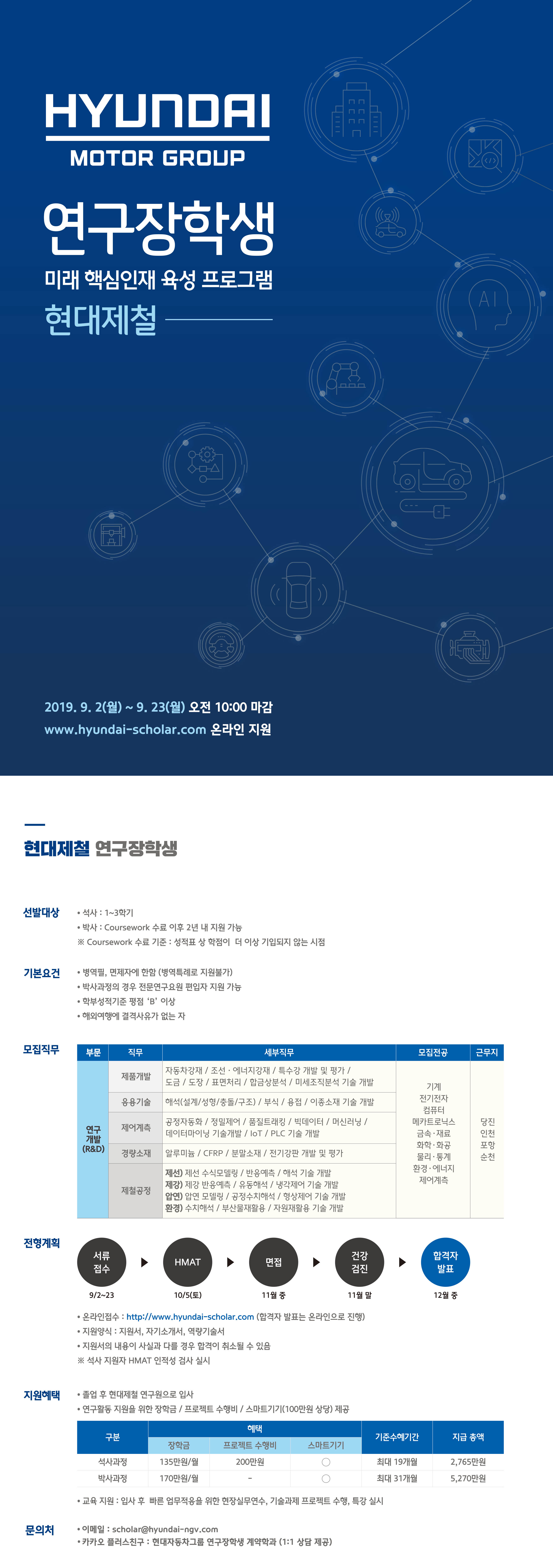 • 카카오 플러스친구 : 현대자동차그룹 연구장학생 계약학과 (1:1 상담 제공)