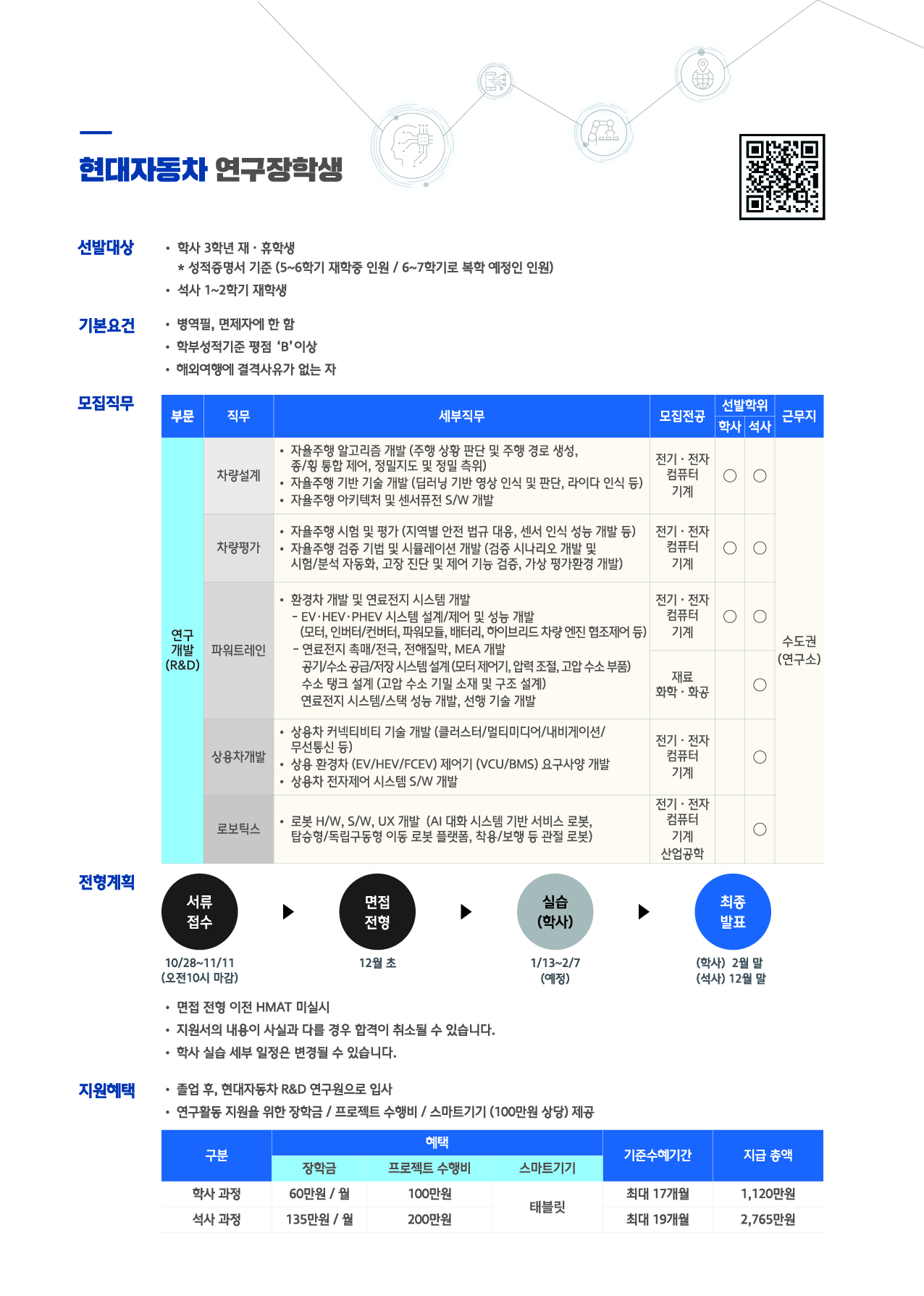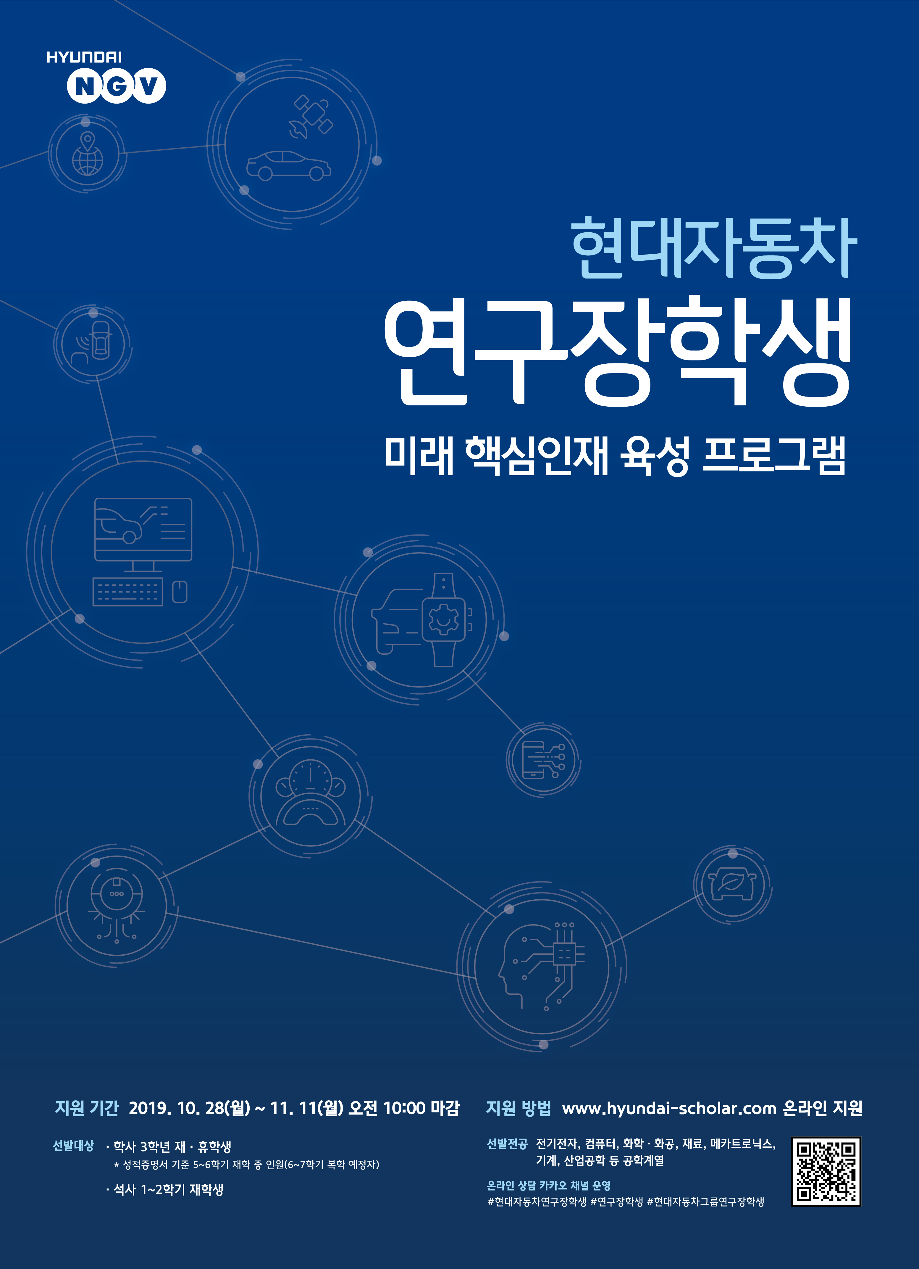 2019 하반기 현대자동차 연구장학생_모집 포스터2019 하반기 현대자동차 연구장학생_모집요강