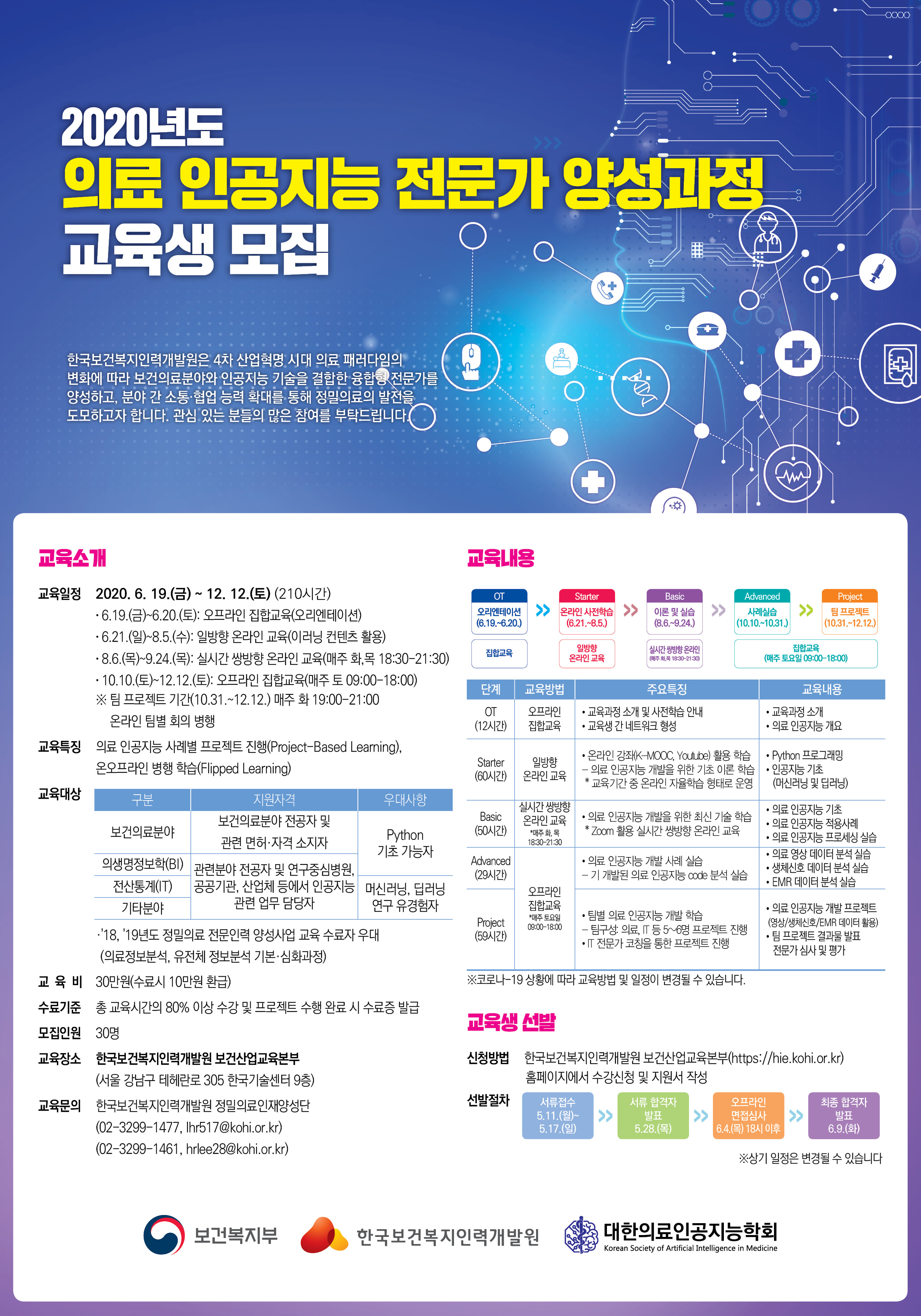 ○교육명: 2020년 의료 인공지능 전문가 양성과정
