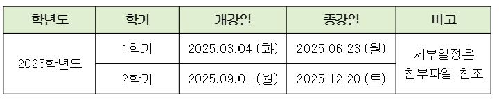 2025학년도 일반대학원 학사일정을 안내 드리오니 참고하여 주시기 바랍니다.