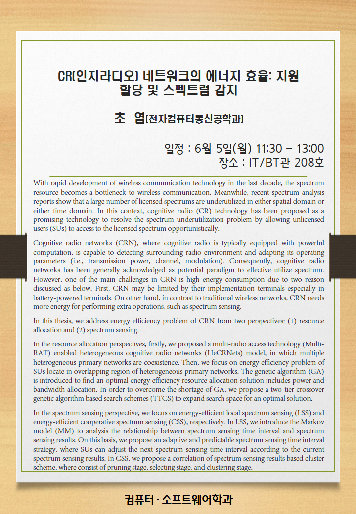 박사과정 학위청구논문 심사 공청회가 진행될 예정입니다.