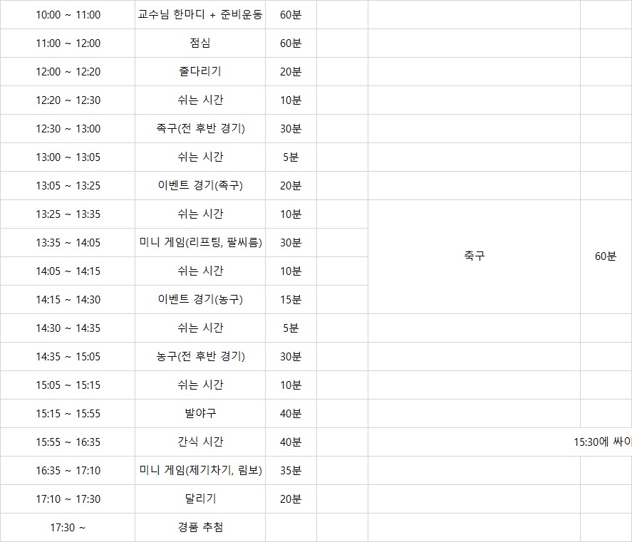 지난 주 우천으로 인해 미뤄졌던 체육대회 일정을 다시 알려드립니다!!