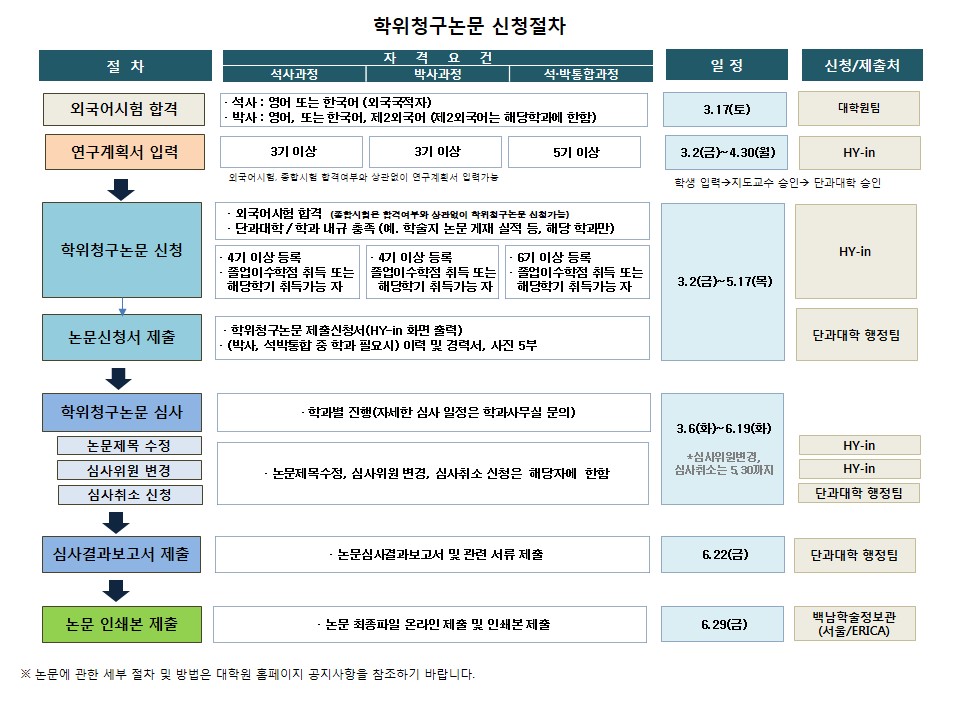 ※ 종합시험을 통과하지 못한 학생의 경우, 학위청구논문 심사 신청은 가능하나 제출은 불가한 점 숙지 바랍니다.