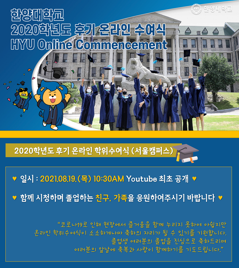 - 일시 : 2021.08.19.(목) 10:30AM (한양대학교 공식계정 홈페이지 및 유튜브 실시간 스트리밍)