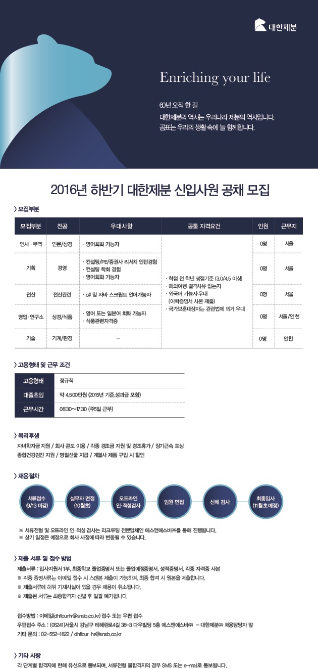 대한제분 하반기 신입사원 공개채용