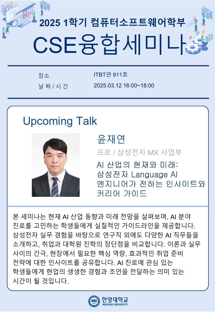 2025학년도 1학기 CSE 융합세미나 1주차 강의 일정을 안내드리오니