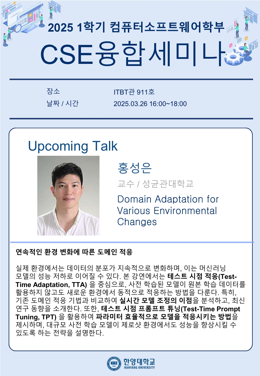 2025학년도 1학기 CSE 융합세미나 2주차 강의 일정을 안내드리오니
