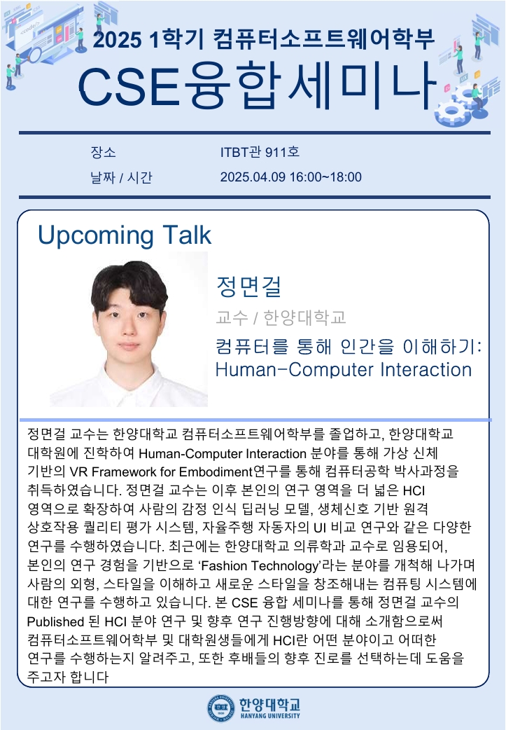 * 이미지 파일 확인이 어려울 시 PDF 파일 참고CSE융합세미나_개별공지용_정면걸님