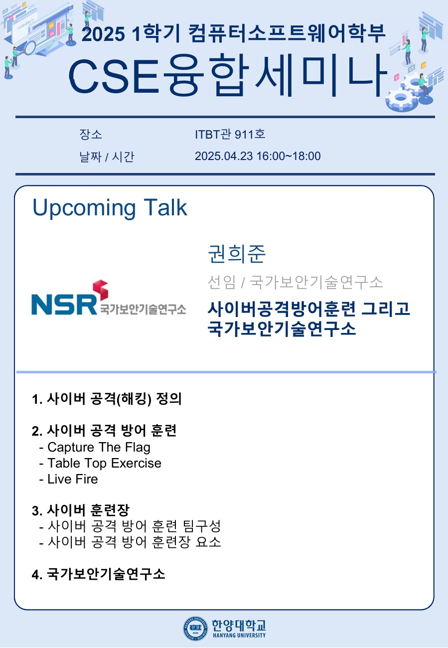 2025학년도 1학기 CSE 융합세미나 5주차 강의 일정을 안내드리오니