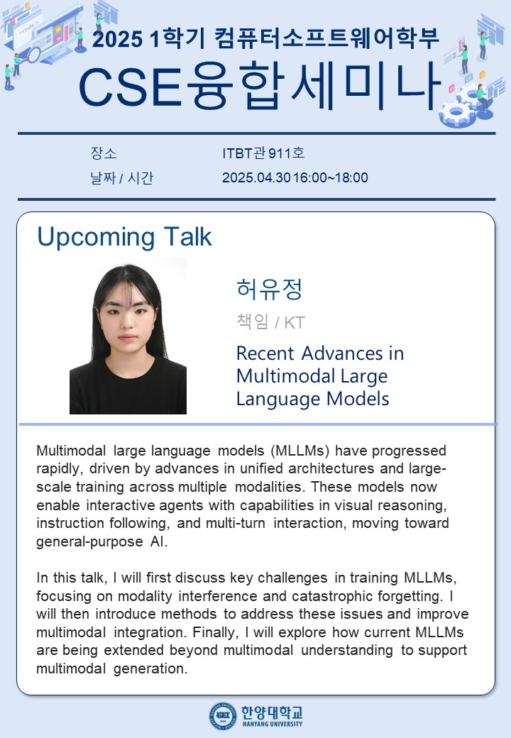 2025학년도 1학기 CSE 융합세미나 8주차 강의 일정을 안내드리오니