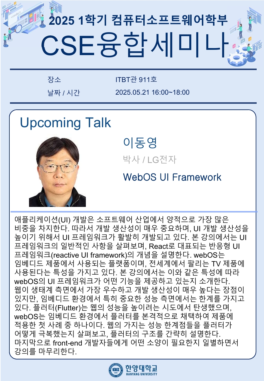 2025학년도 1학기 CSE 융합세미나 11주차 강의 일정을 안내드리오니